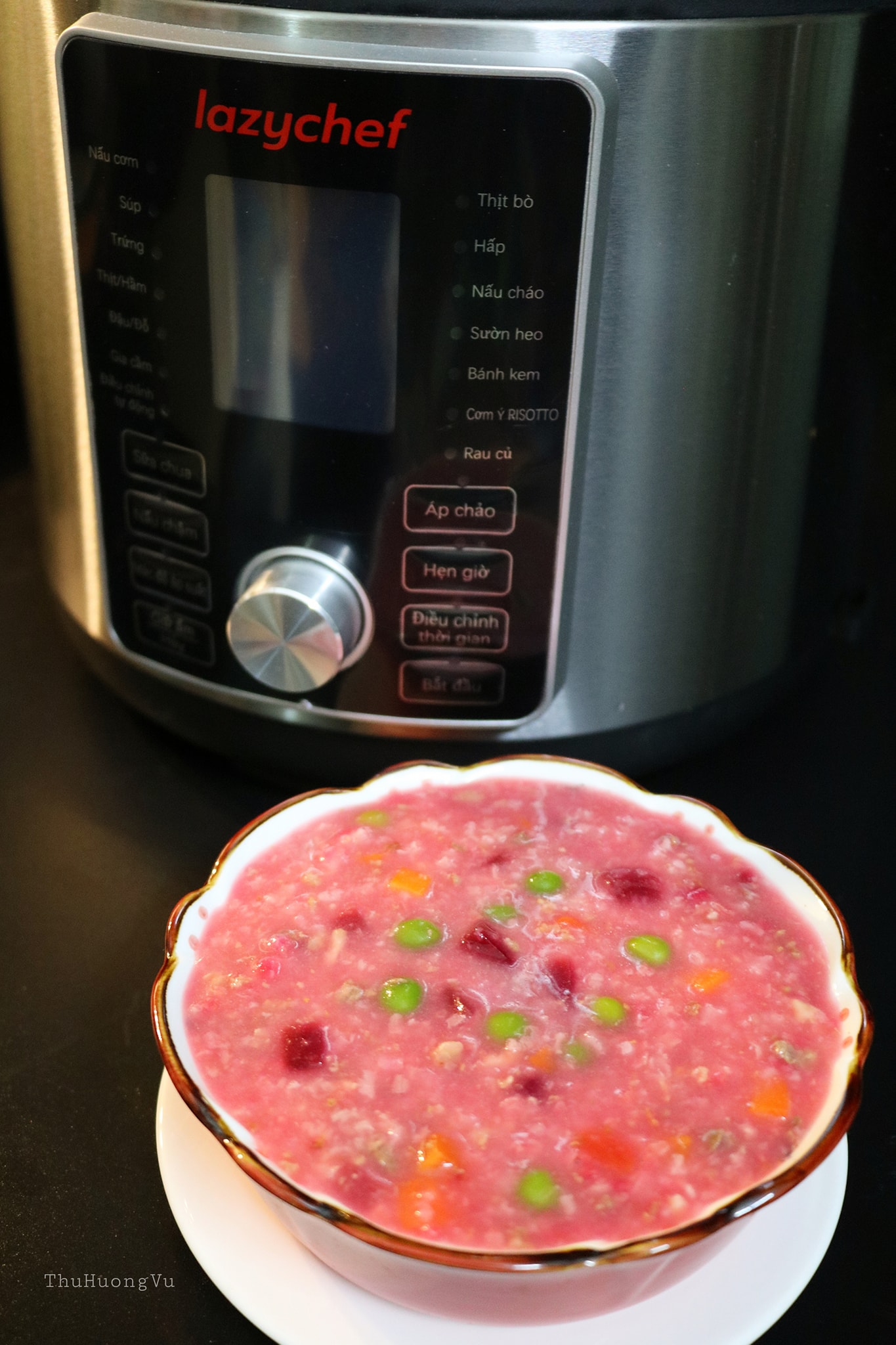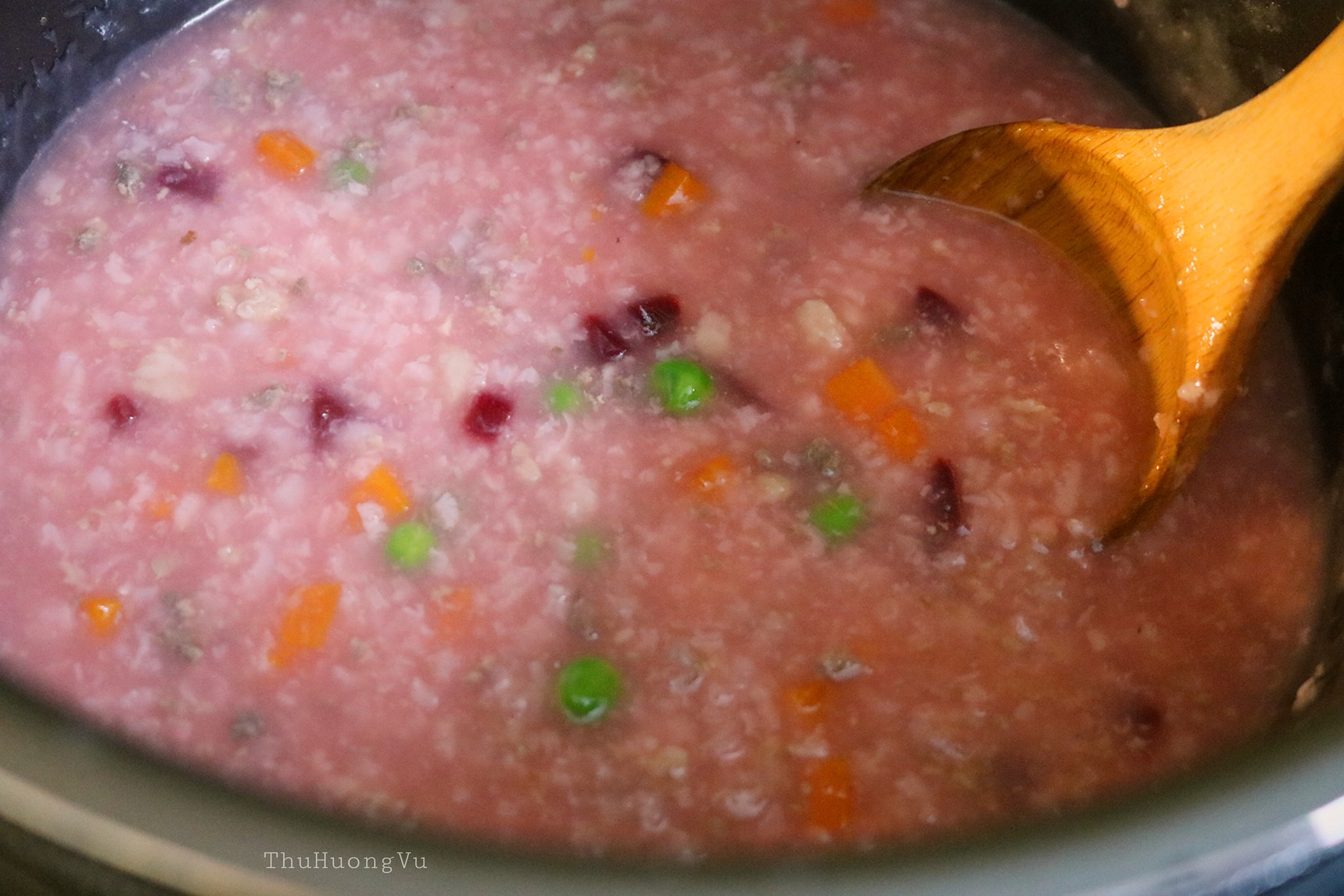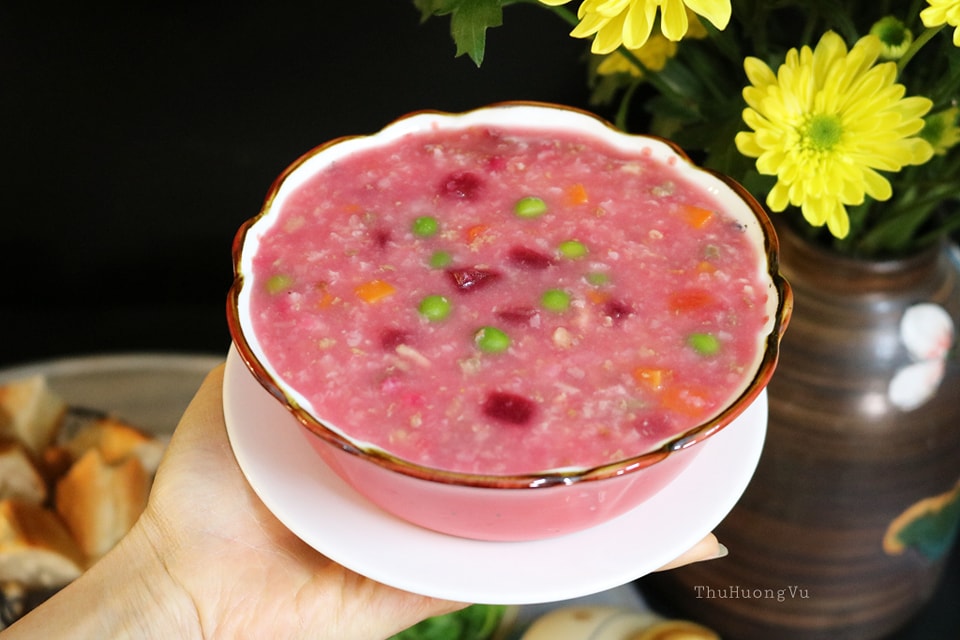 Sáng sớm thức dậy có ngay bát cháo Bò Bằm Củ Dền Đỏ ấm bụng cho các con đi học thì yên tâm lắm các mom ạ.