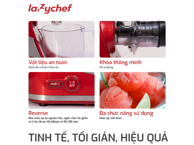 Sản phẩm máy ép chậm trục ngang LazyChef có thiết kế nhỏ gọn, dễ tháo lắp, vệ sinh và tích hợp những tính năng thông minh, đem lại sự tiện lợi cho người tiêu dùng. Nếu như nỗi ám ảnh của bạn là những chiếc máy ép cồng kềnh, ồn ào mỗi khi ép rau, củ, quả hoặc chất lượng nước ép chưa đạt chuẩn thì máy ép chậm trục ngang LazyChef sẽ giải quyết triệt để những vấn đề này. Bài viết dưới đây sẽ cho bạn cái nhìn toàn diện nhất về sản phẩm này.