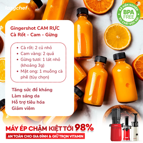 Ginger + cam + cà rốt: Đậm vị cam, gừng chống viêm, cà rốt bổ beta-carotene