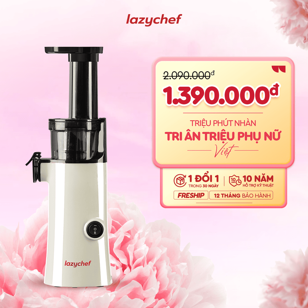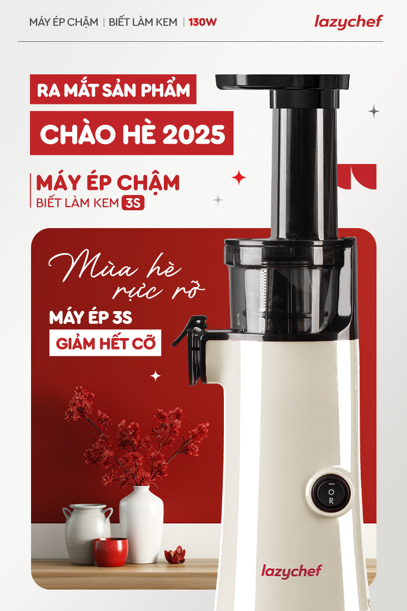 Lazychef chính thức ra mắt máy ép chậm 130W màu kem – Phiên bản cải tiến mới màu be kem thanh lịch. Vẫn giữ được vóc dáng nhỏ gọn, dễ vệ sinh như dòng đỏ trước đó, nhưng phiên bản màu be kem trang nhã này mang đến cảm giác sang trọng, phù hợp mọi phong cách decor từ hiện đại đến tối giản. Không chỉ ép khỏe – ép kiệt, máy còn có thể làm kem trái cây siêu mịn hoặc bào đá làm bingsu giải nhiệt mùa hè, cực tiện lợi cho cả gia đình!