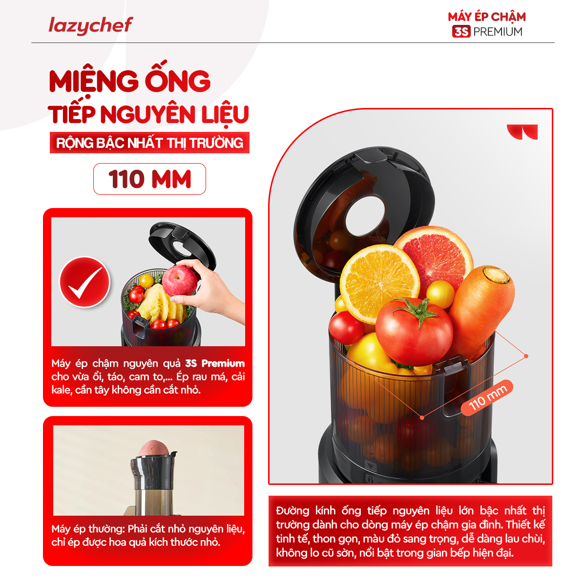 [RA MẮT] Máy Ép Chậm Nguyên Quả Lazychef 3S Premium Max 3in1: Sở Hữu Tính Năng VẮT CAM "Đầu Tiên Tại Việt Nam"